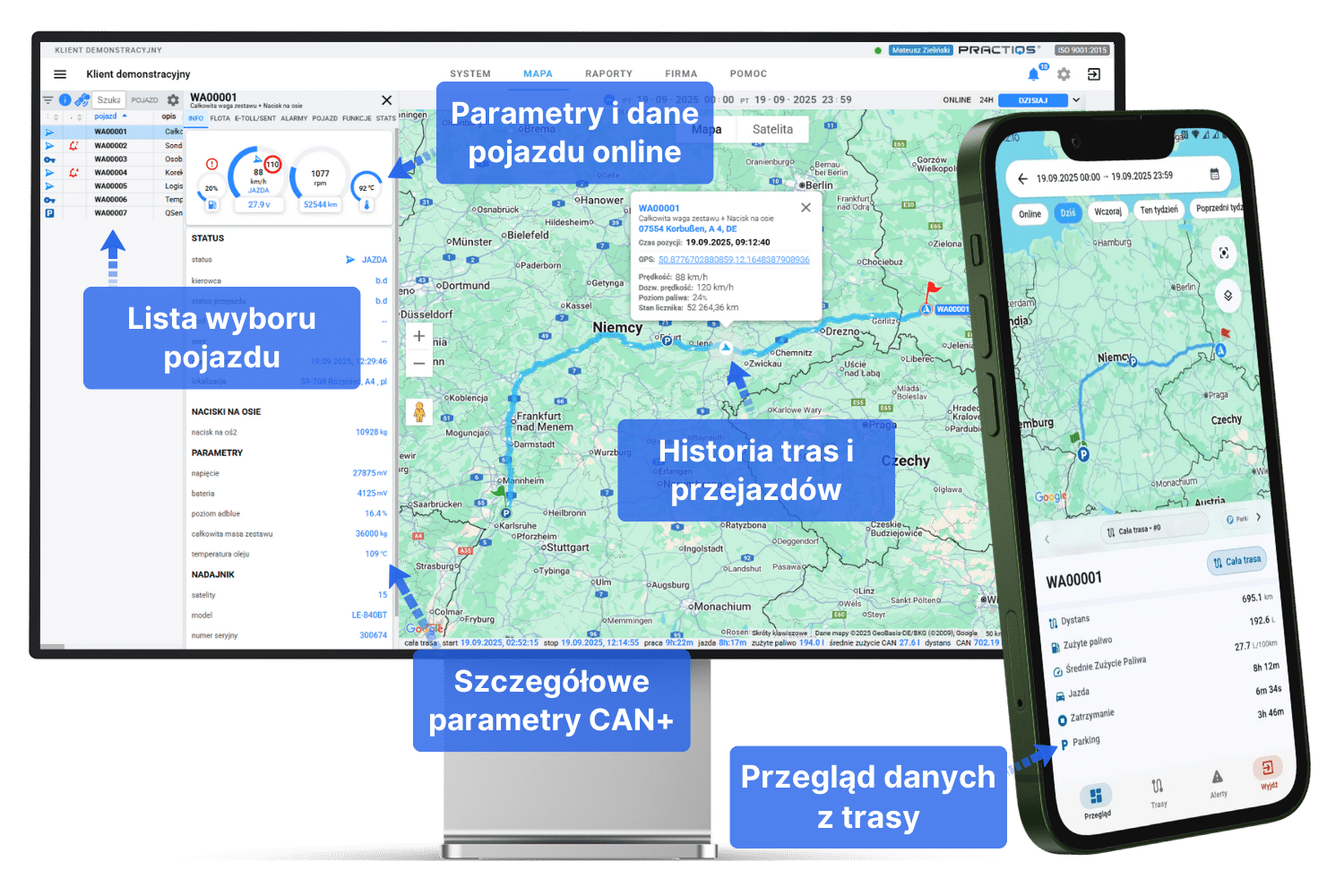 Nasza aplikacja PractiQS oferuje znacznie więcej niż tylko monitorowanie pojazdów w czasie rzeczywistym. Dzięki zaawansowanym funkcjom skuteczniej zarządzisz flotą i podejmiesz świadome decyzje. Dowiedz się, jak nasze rozwiązania mogą zrewolucjonizować zarządzanie Twoją flotą!